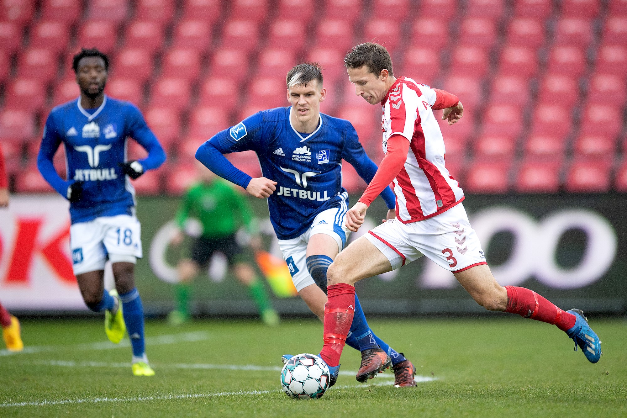 - dommer Jonas Hansen dømmer sin tredje kamp i 3F Superligaen efter forfremmelsen til at dømme i den bedste danske række i december 2019. Han har endnu ikke dømt en 3F Superligakamp med deltagelse af hverken Esbjerg fB eller AaB.