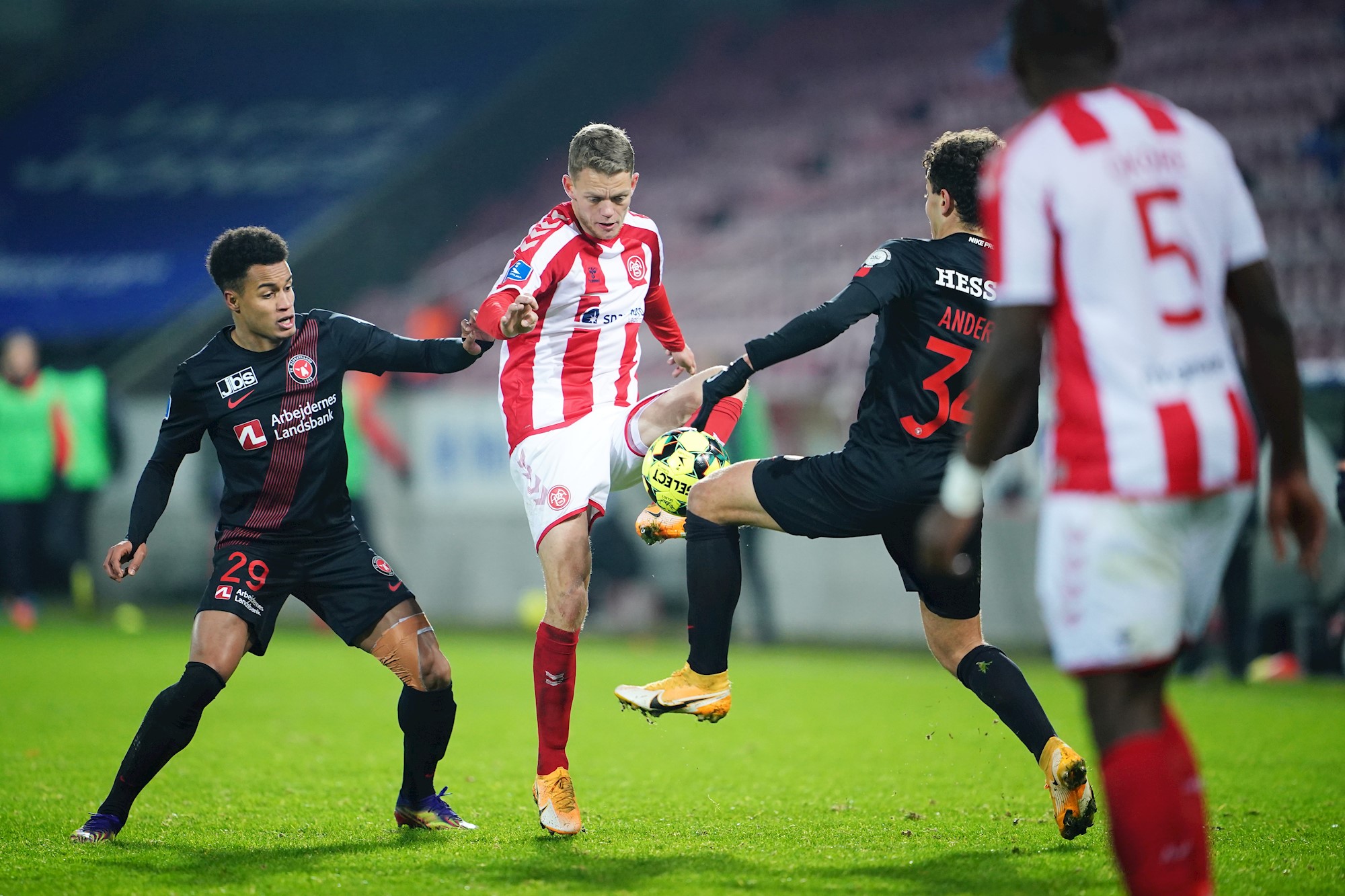 I modsatte ende førte et godt sammenspil mellem Lucas Andersen, Jakob Ahlmann, Kasper Kusk og Frederik Børsting frem til en afslutning fra Iver Fossum, der sparkede kuglen lige forbi nærmeste stolpe.
