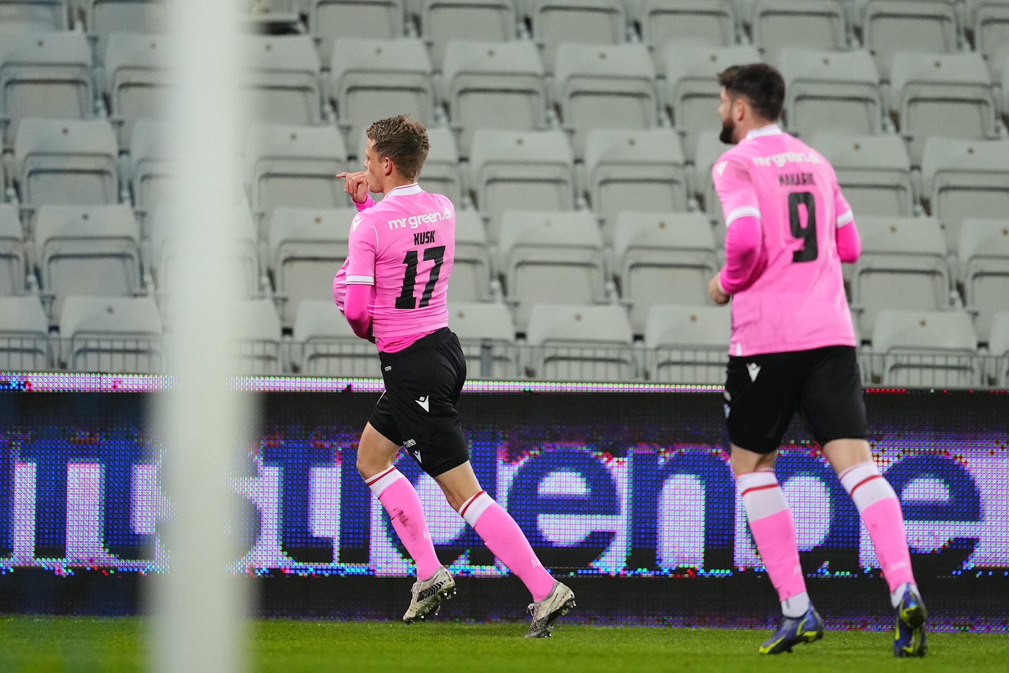 Straks efter fik Kristoffer Pallesen en næsten tilsvarende mulighed i modsatte ende, men AaB-spilleren dirigerede læderet over mål.