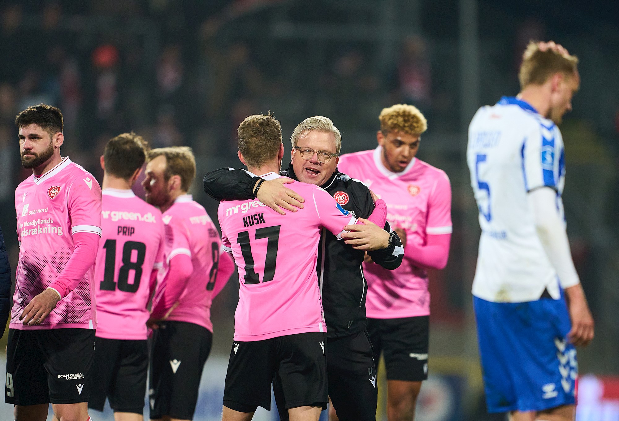AaB (3-5-2): Jacob Rinne, Daniel Granli, Rasmus Thelander, Anders Hagelskjær, Kristoffer Pallesen, Malthe Højholt (59: Kasper Kusk), Magnus Christensen (59: Pedro Ferreira (76: Anosike Ementa)), Iver Fossum, Jakob Ahlmann (59: Gudmundur Thórarinsson), Kasper Høgh (29: Milan Makaric), Louka Prip.