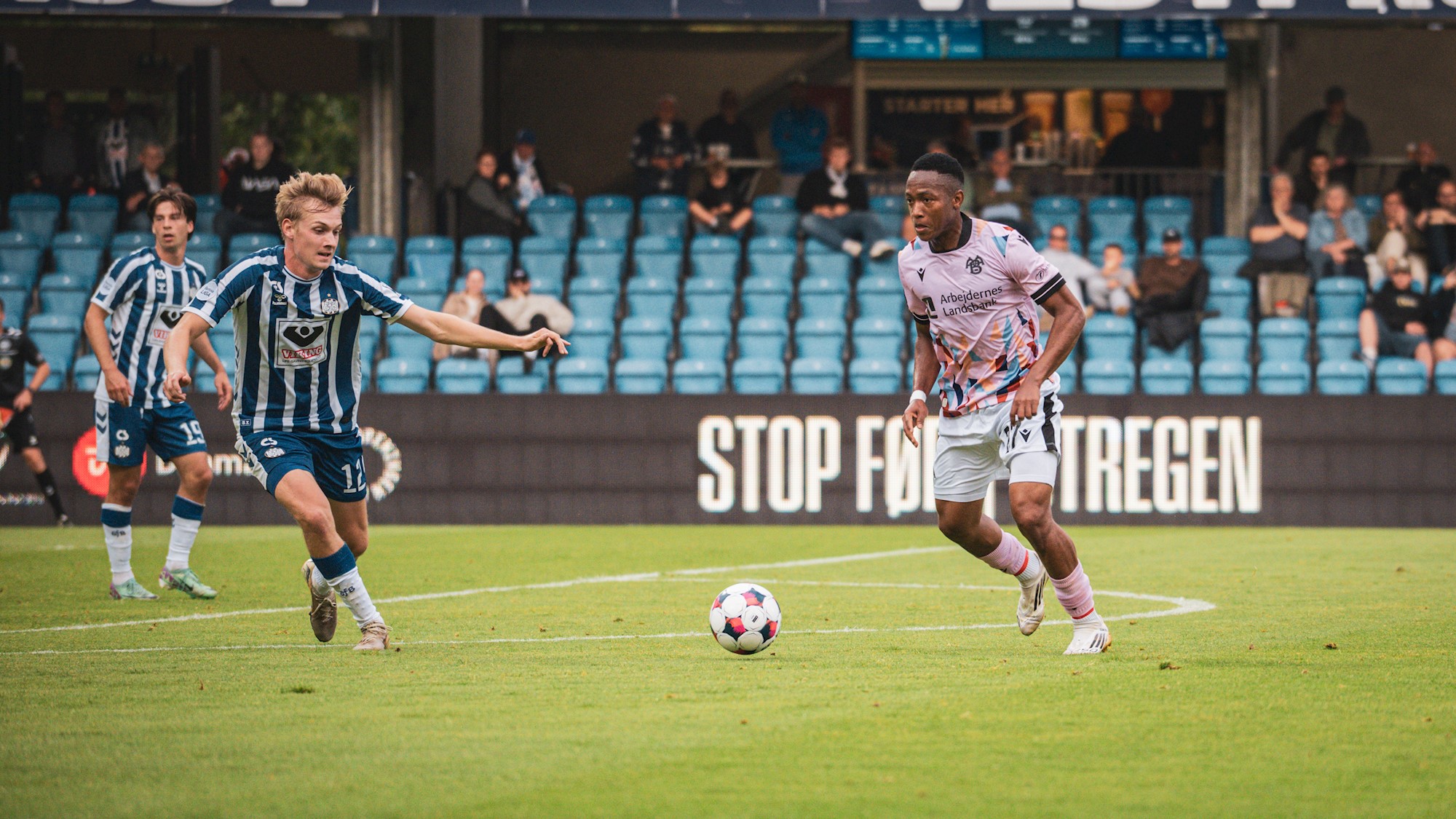 I det modsatte målfelt fik Frederik Børsting også trykket af, men anførerens afslutning blev afrettet til et hjørnespark.