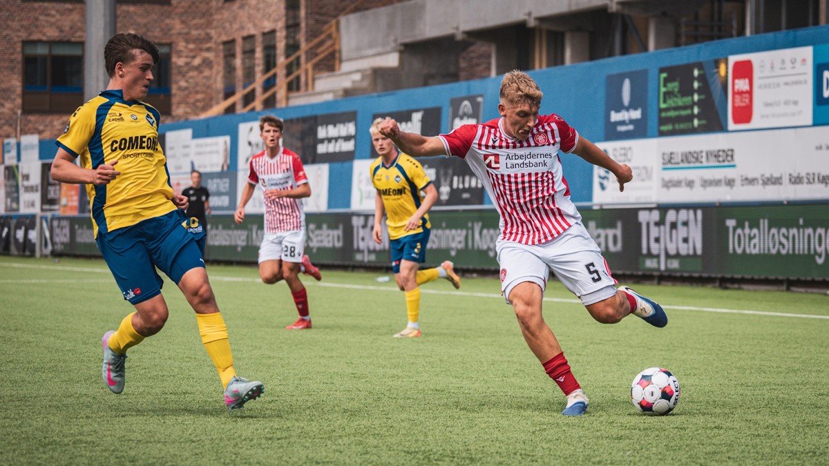 I tillægstiden til første halvleg var Valdemar Møller tæt på at fordoble føringen efter et indlæg fra Frederik Børsting, men afslutningen fra den 18-årige offensivspiller gik lige forbi. Dermed lød vores pauseføring på 1-0.
