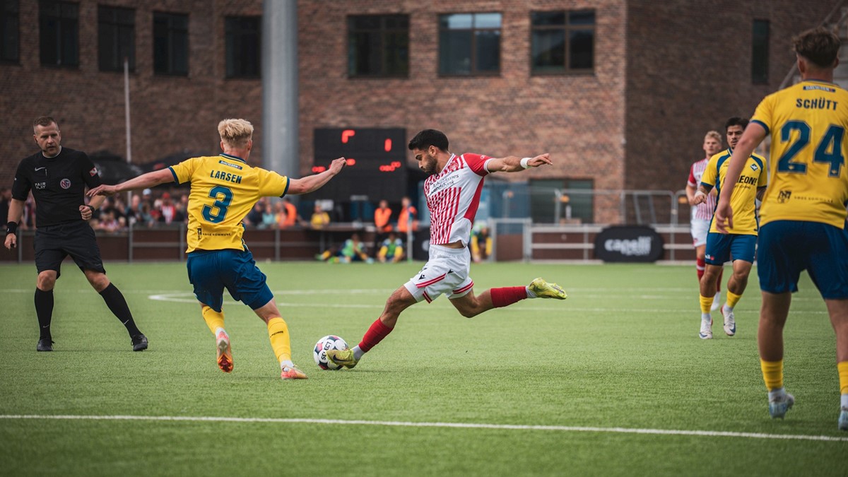 HB Køge (3-4-3): Berkant Bayrak, Sebastian Larsen, Mads Westergren, Laurits Bust (60: Viktor Sørensen), Mads Schütt (76: Mustafa Salah), Gabriel Larsen (76: Basem Alkhoudari), Mike Jensen, Niklas Jakobsen, Gabriel Culhaci (70: Mohamad Al-Naser), Ifenna Dorgu (70: Alfred Gøthler), Christian Tue Jensen.