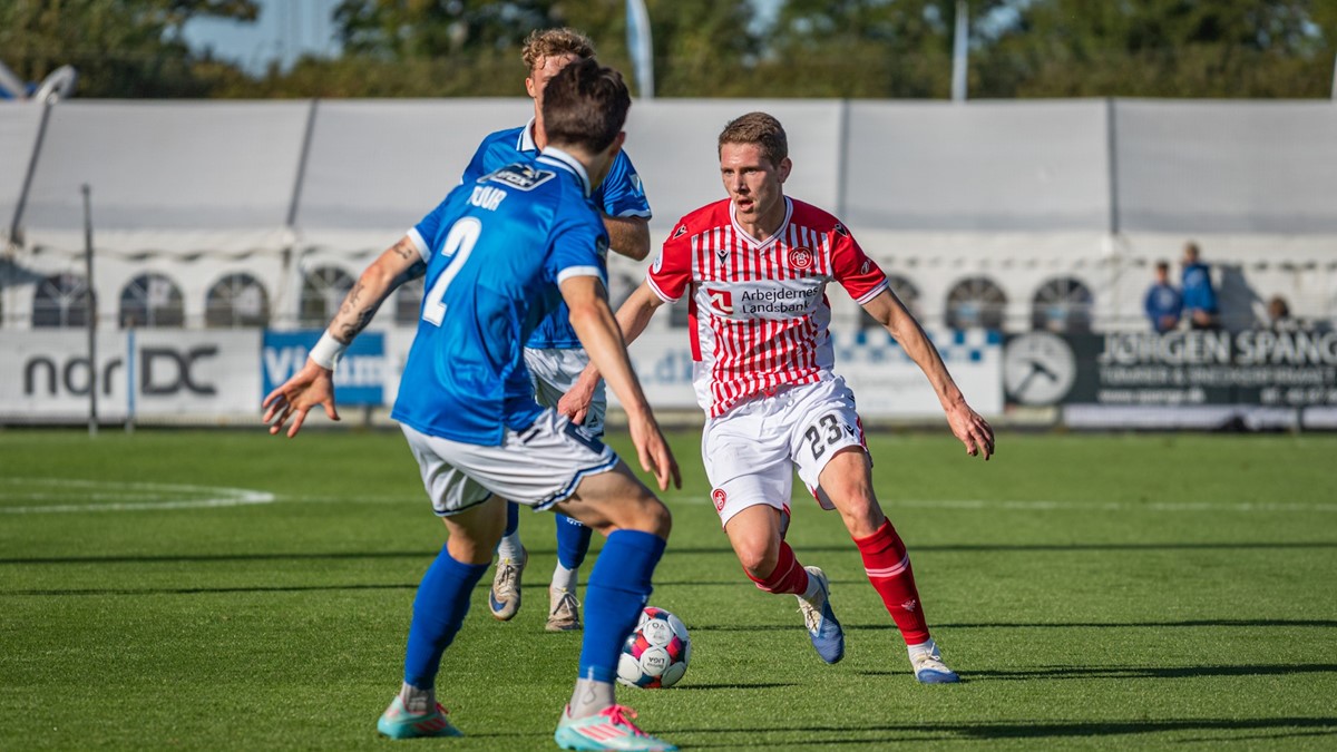 32. min 1-0 Gustav Fraulo, 35. min 2-0 Frederik Gytkjær, 46. min 2-1 Kelvin John