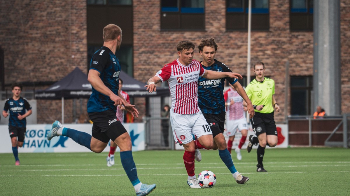 HB Køge (3-4-3): Noah Sømmergaard, Mads Westergren (34: Erkan Semovski), Mattias Jakobsen, Laurits Bust, Viktor Sørensen (28: Lukas Achton), Mike Jensen, Marcel Rømer, Silas Hald, Alfred Gøthler (86: Basem Alkhoudari), Tobias Thomsen, Gabriel Larsen.