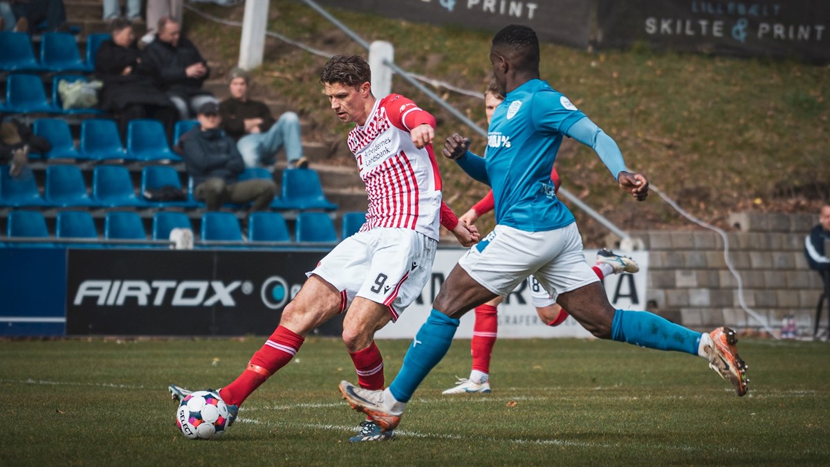 På et vindblæst Middelfart Sparekasse Stadion blev det inden for de første par minutter både til afslutninger fra Kornelius Normann og Mathias Kubel. Men den akrobatiske afslutning fra Kornelius Normann i forlængelse af et langt indkast fra Nóel Atli Arnórsson var uden præcision, og Mathias Kubels langskud blev reddet af Casper Radza i Middelfart-målet.